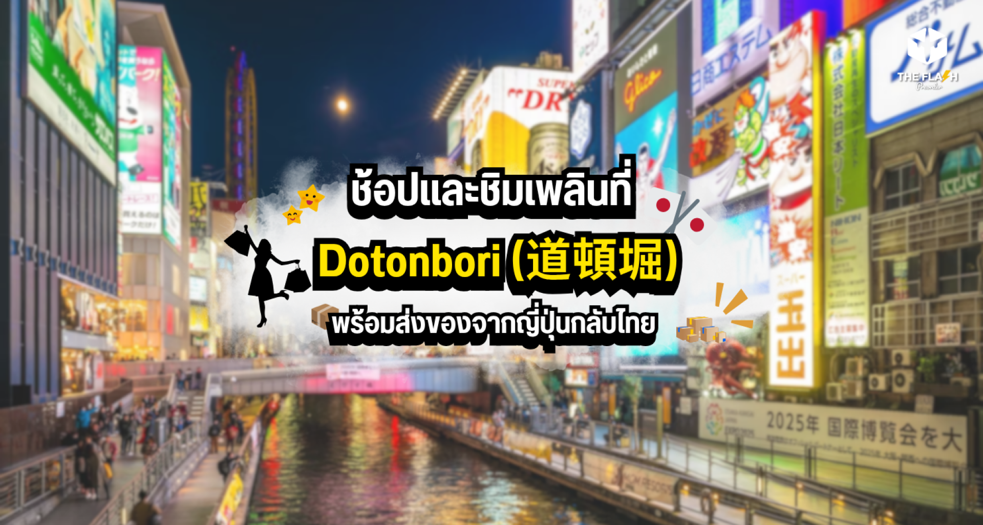 ถ้าพูดถึงโอซาก้า (Osaka 大阪) แล้วมีเพียงหนึ่งย่านที่คุณต้องแวะ Dotonbori 道頓堀 คือคำตอบแน่นอน เพราะที่นี่ไม่ใช่แค่สวรรค์ของสายกิน แต่ยังเป็นแหล่งรวมของฝากและสินค้าญี่ปุ่นแท้ที่คุณสามารถซื้อกลับได้แบบจัดเต็ม ไม่ว่าจะเป็นขนมชื่อดัง, สินค้าคาแรกเตอร์, หรือของที่ระลึกเฉพาะโอซาก้า และถ้ากังวลเรื่องแบกของหนักกลับไทย บทความนี้จะพาคุณรู้จัก วิธีส่งของจากญี่ปุ่นกลับไทยผ่าน The Flash Preorder ที่ช่วยให้การช้อปของคุณง่ายกว่าที่เคย