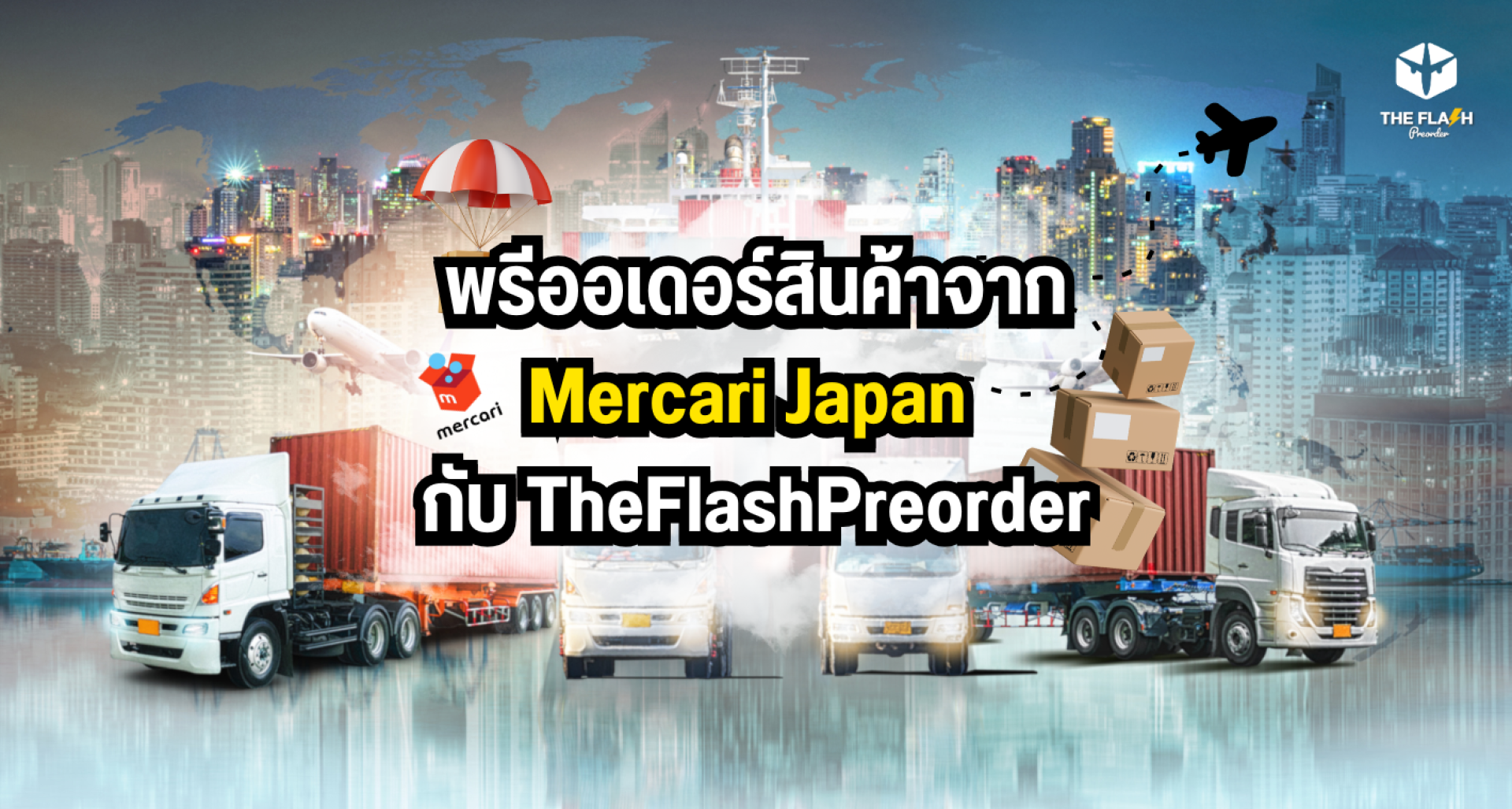 TheFlashPreorder คือบริการสั่งซื้อและขนส่งสินค้าจากญี่ปุ่นกลับไทยแบบครบวงจร ลูกค้าเพียงส่งลิงก์สินค้าที่ต้องการจาก Mercari Japan ทีมงานจะดำเนินการแทนทุกขั้นตอน ตั้งแต่การสั่งซื้อ รับสินค้า ตรวจสอบ เคลียร์ภาษี และจัดส่งถึงบ้านในประเทศไทย