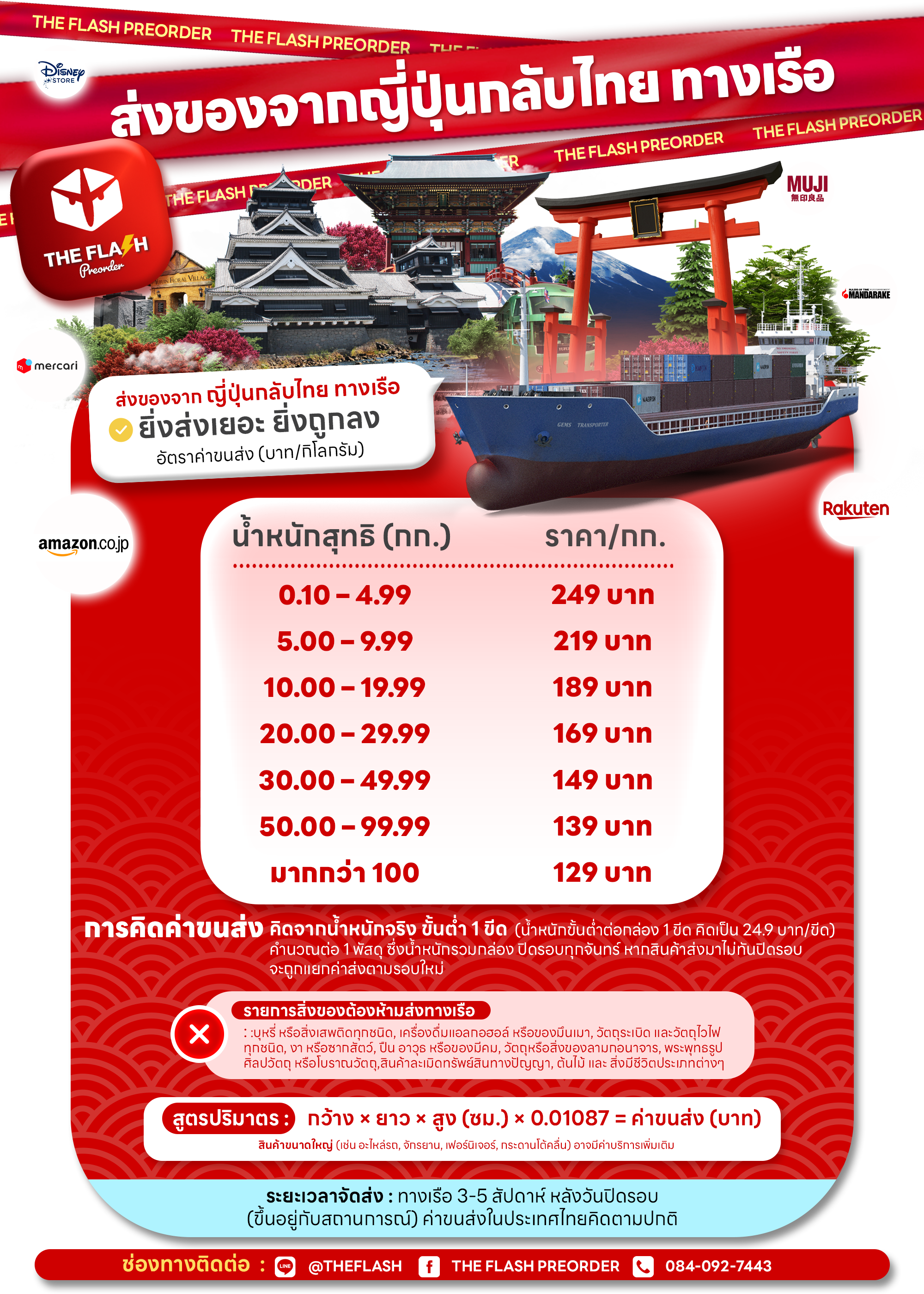 หากคุณต้องการ ส่งของจากญี่ปุ่นกลับไทย แบบประหยัด คุมต้นทุน และไม่ปวดหัวเรื่องเอกสาร การ ขนส่งทางเรือญี่ปุ่น กับ The Flash Preorder คือคำตอบ ด้วยบริการครบวงจร ไม่มีขั้นต่ำ เคลียร์ภาษีให้เสร็จ และติดตามสถานะได้ตลอดทาง